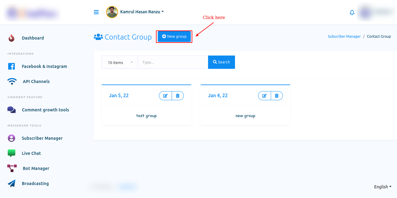 To create a group, click on the button called the group in the Contact option of SMS/email broadcasting section.