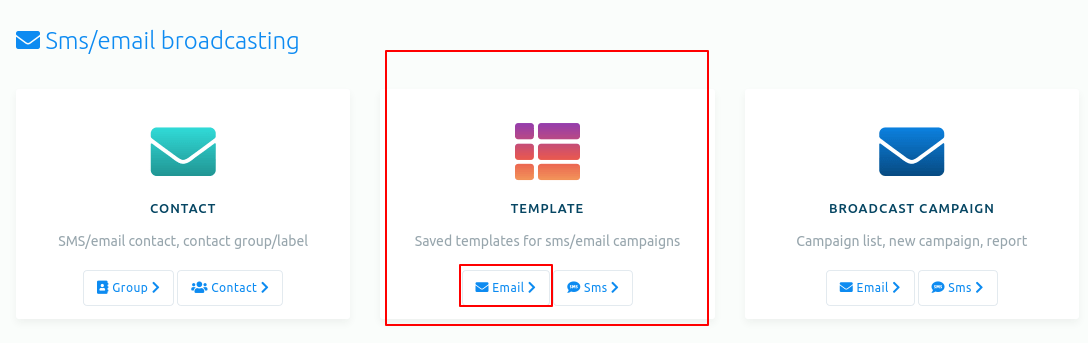 Now get back to the interface of the broadcasting. On the template option, click on the Email button to create an email template.