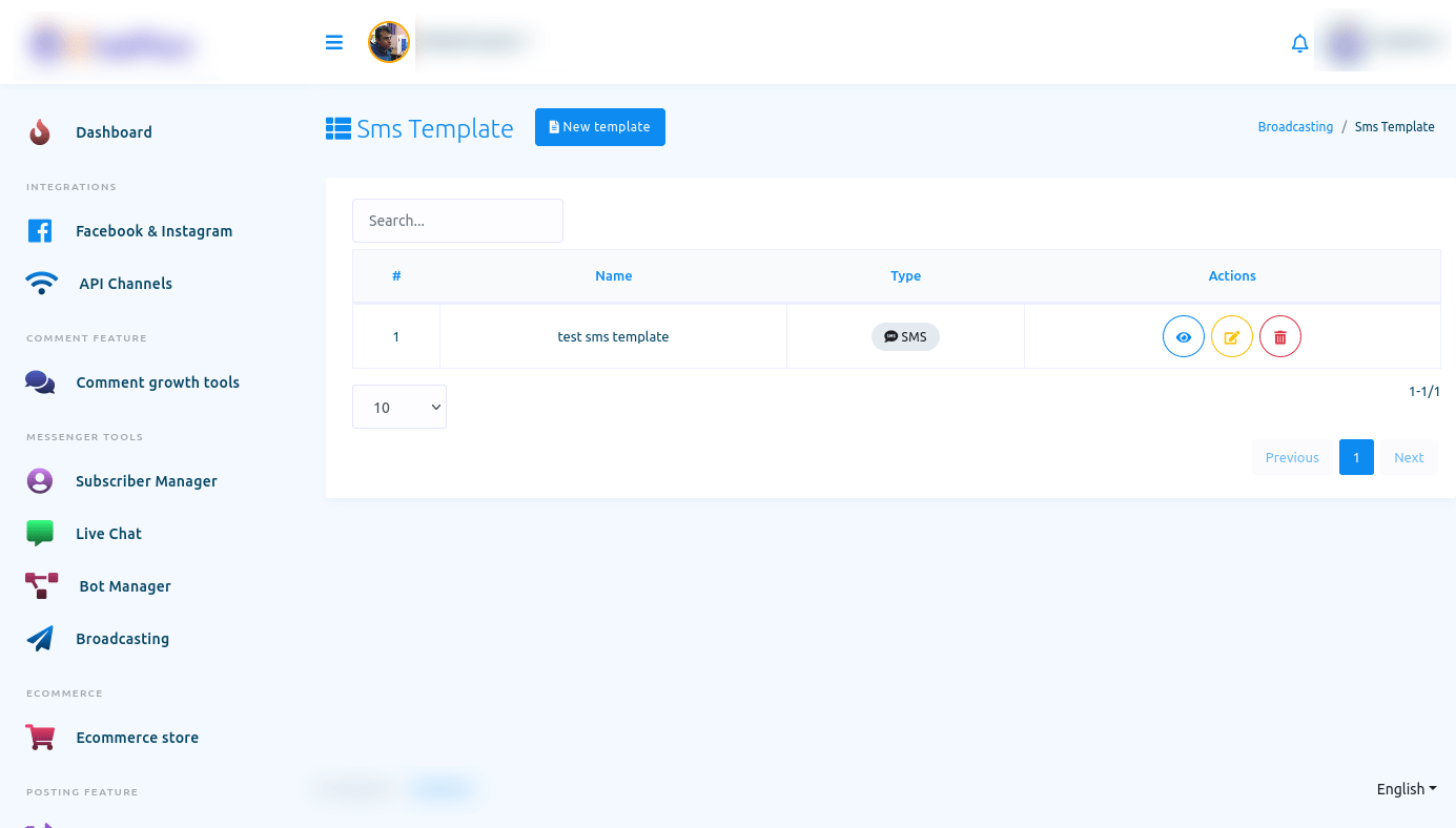 And instantly, a page called SMS template with a button called New template will appear. Click on the New template button.