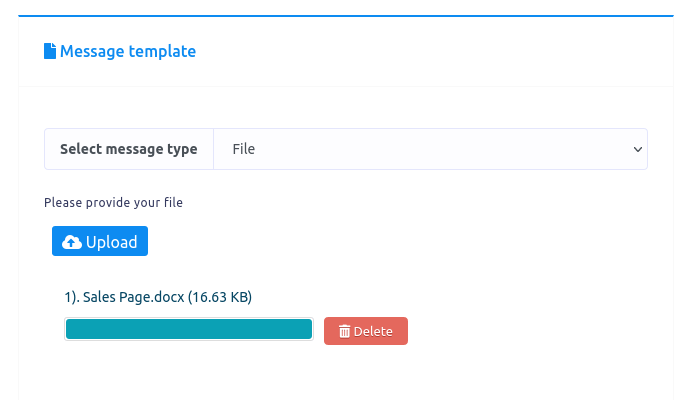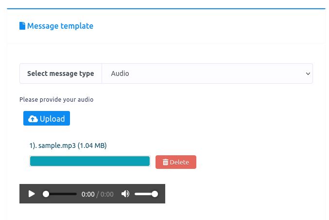 And if you select image, audio, video, or file as the message type, an upload button will appear. By clicking on the upload button, you have to upload image, audio, video or file for the respective message type.