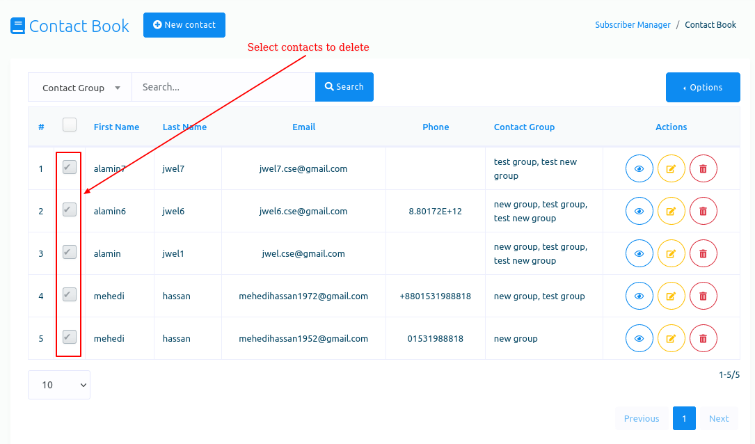 Instantly, a modal form will appear with the ok and cancel button. To delete the contacts, click on the ok button and the selected contacts will be deleted.