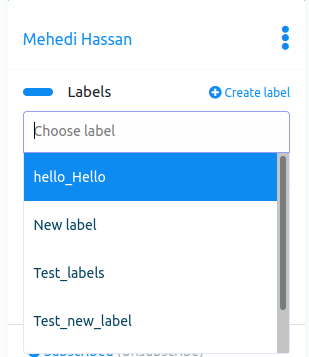 Moreover, you can create a new label from here. Click on the create label button and a modal form with one field will appear. Write the name of the new label in the field and click on the new label button, and the label will be created and selected in the field automatically.