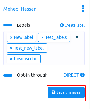 First, you will see a form called a label. From the label field, you can assign a label to a specific user. Click on the label form and instantly appear a drop-down menu of different labels you have created before. Then you have to select a label to assign the label to a subscriber list. The selected labels will appear on the label form. Well, you can select as many labels as you want for a specific user. True, you can remove labels one after another by clicking on the cross icon next to the label name. Of course, you can remove all the labels by clicking on the cross icon in the field.