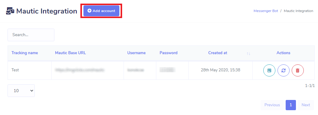 Click on the Mautic and you'll be redirected to the Mautic account adding section.