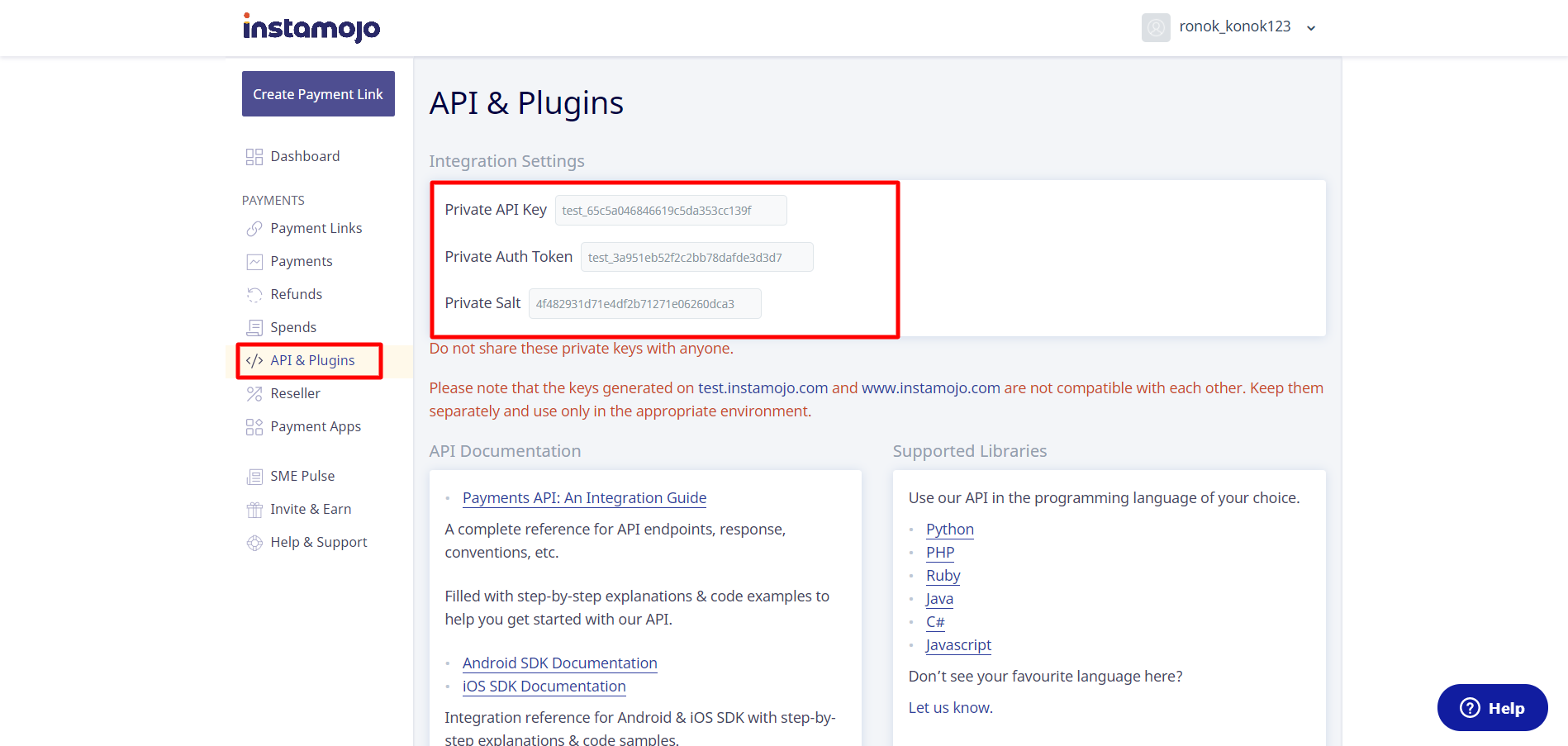 Toyyibpay Secret Key & Toyyibpay Category code: If you want to integrate Instamojo payment method then you’ve to put your Instamojo private api key & private auth token. Visit Instamojo and go to API & Plugins and copy your private api key & private auth token and paste into the corresponding field.