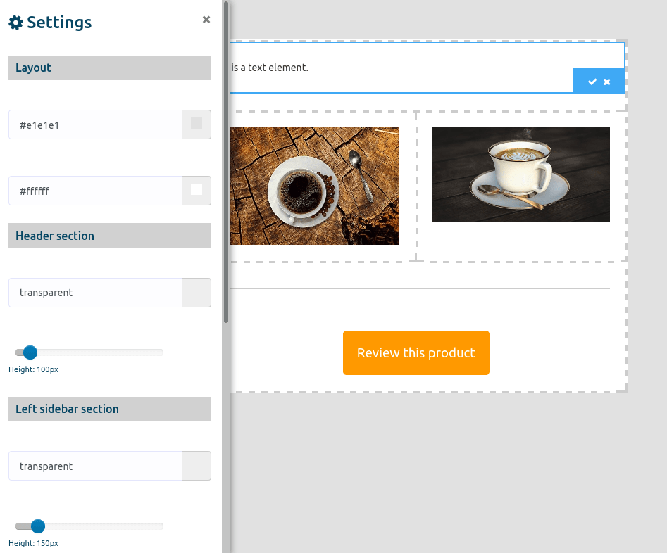 With the four types of options, you can create four types of template. Click on any option and an editor will appear. On the right side of the editor, you will see a sidebar with some elements – Text, image, link, and divider. Now you have to drag the element and drop it on the editor.