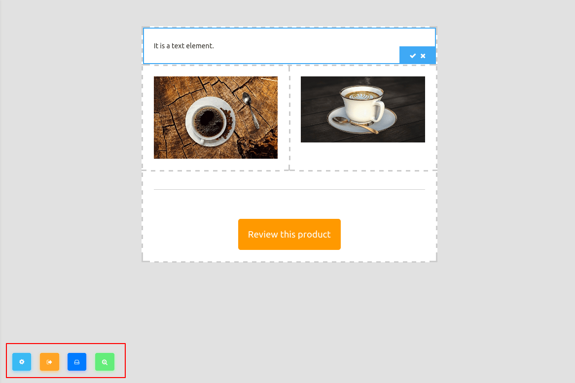 Now drag the text element and drop it on the editor. Now double-click on the text element and a field will appear. And on the field, you have to write your text. Then click on the tick to save the text. Likewise, by clicking on the cross button, you can delete the text and the element.