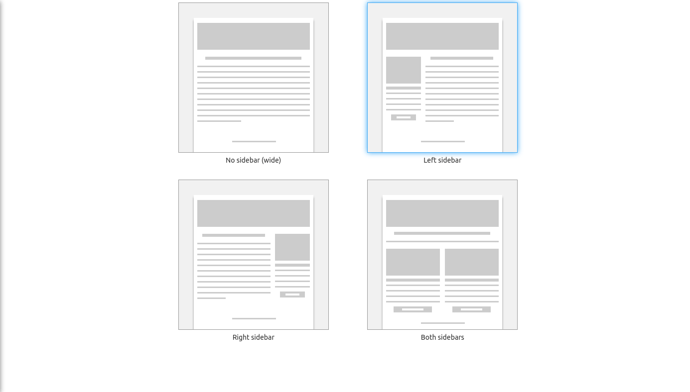 Instantly, a page with four options – no sidebar, left sidebar, Right sidebar, both sidebar – will appear.