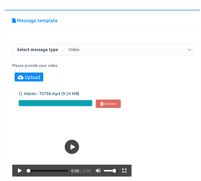 And if you select image, audio, video, or file as the message type, an upload button will appear. By clicking on the upload button, you have to upload image, audio, video or file for the respective message type.