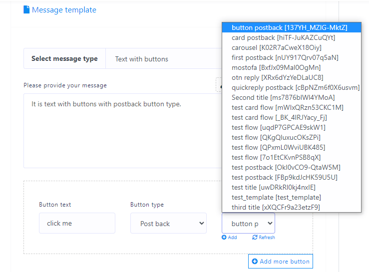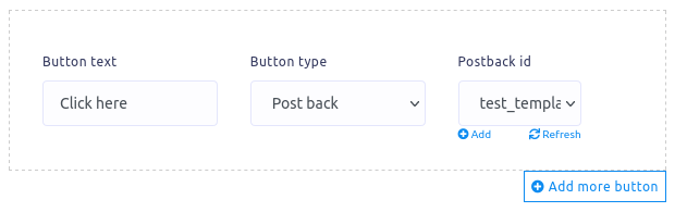 If you select postback, another field called postback id will appear. In the postback id field, you have to select a pre-defined postback template. You can also create a postback id by clicking on the add button.